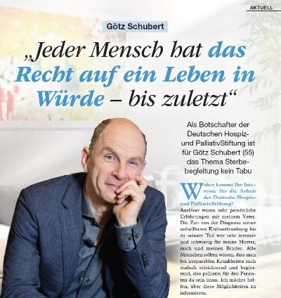Götz Schubert, Botschafter der DHPStiftung, im Interview mit dem Magazin Pflege & Familie über sein Interesse an der Hospiz- und Palliativarbeit, seinen Vorsatz, die gesundheitliche Versorungsplanung anzugehen, sowie seine Vorstellungen vom eigenen Lebensende.